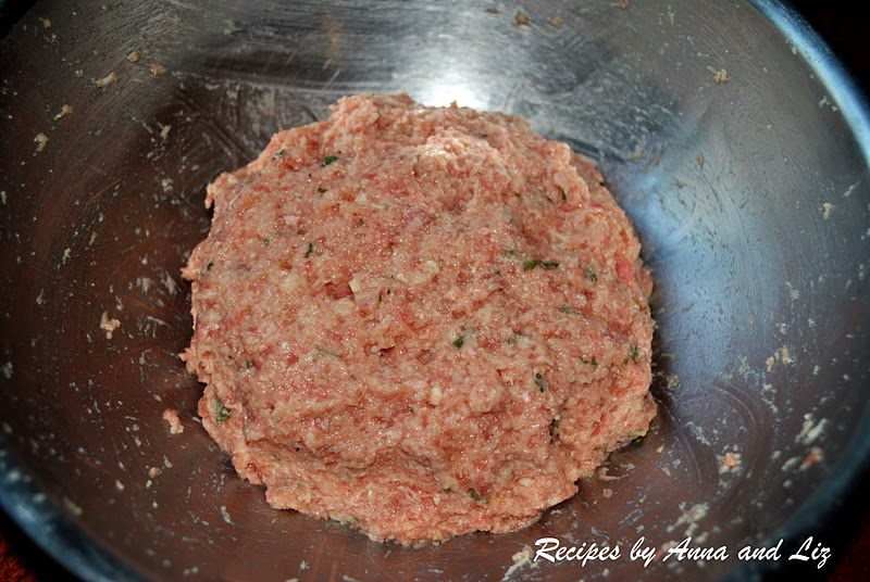 5. Begin to mix the ingredients. You may use a food processor or a KitchenAid with a flex-edge beater. Or use your hands, if you prefer. Mix the meat mixture until well combined and set aside.