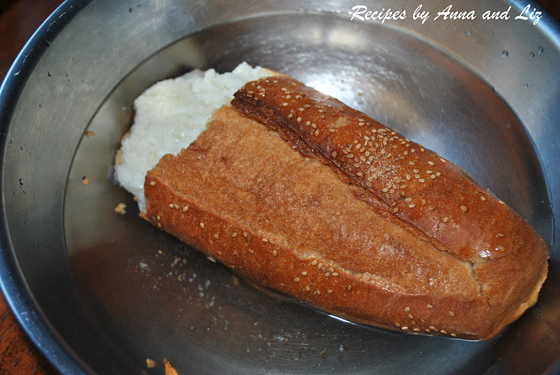1. Quick Note: If you have day-old bread, let’s use it for this recipe. In a large bowl filled with water, submerge the bread, and allow the bread to soak for a few minutes.