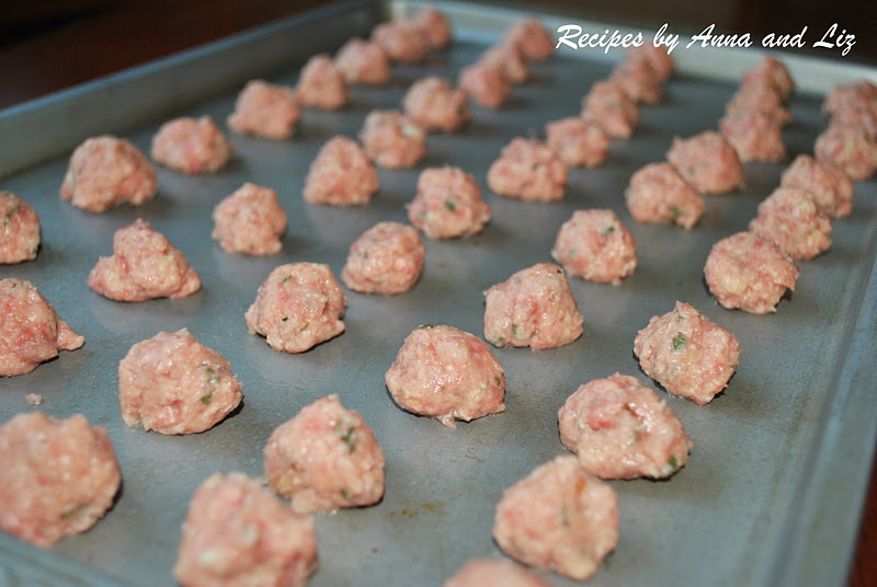 - Using a teaspoon, begin to spoon a small amount of chopped meat mixture into your hand and roll into 1-inch balls. Then place the meatballs onto the prepared baking sheet. (NOTE: the mixture will yield about 45 to 50 mini meatballs).