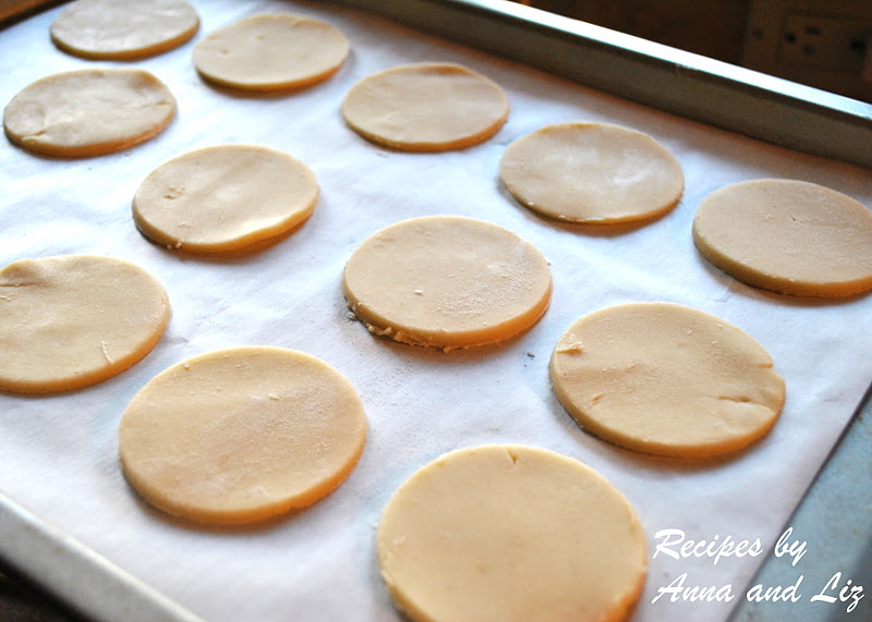 - On a lightly floured surface, roll out the dough until it is about 1/4 inch (.6 cm) thick. Using a lightly floured 2 inch (5 cm) round cookie cutter, cut out rounds.