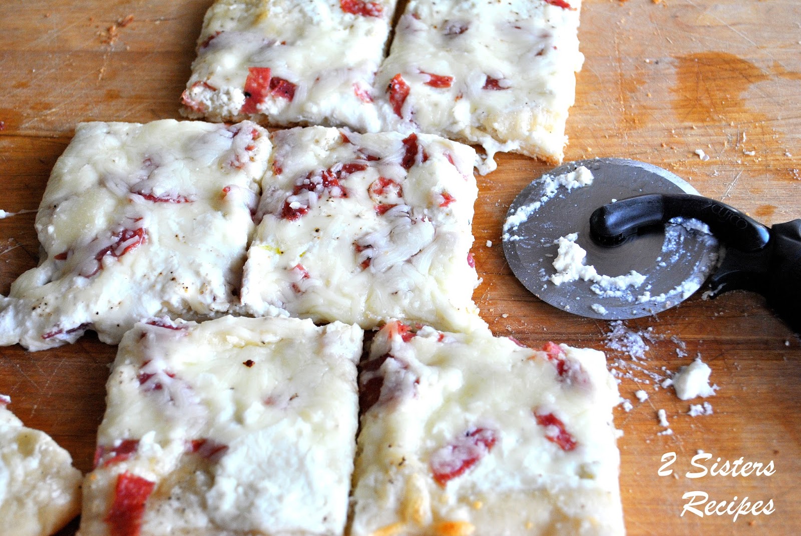 Bake for additional 10 to 15 minutes, until the mozzarella cheese is completely melted and the edges and bottom of the crust is golden brown. Remove and cut into small squares. Serve.