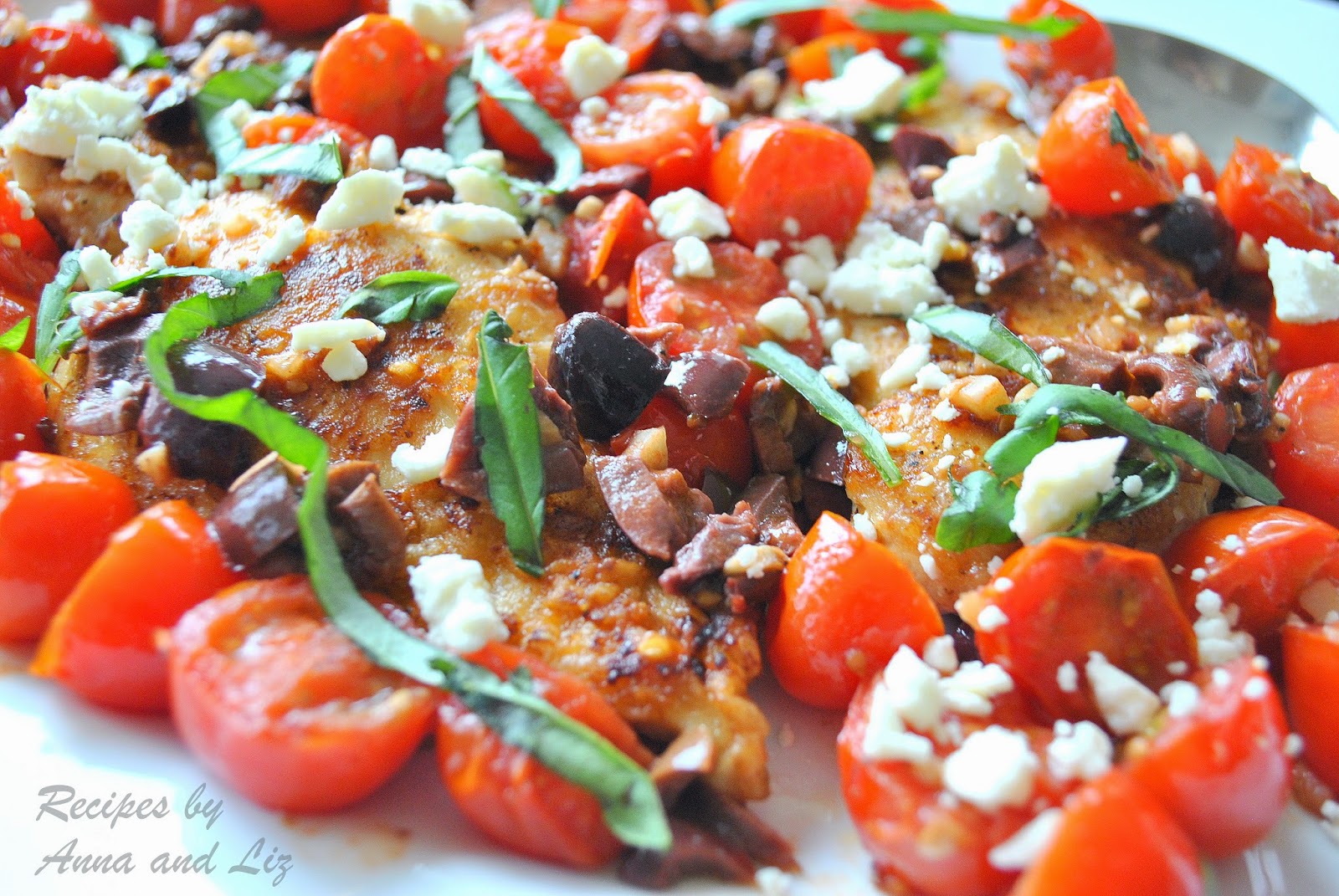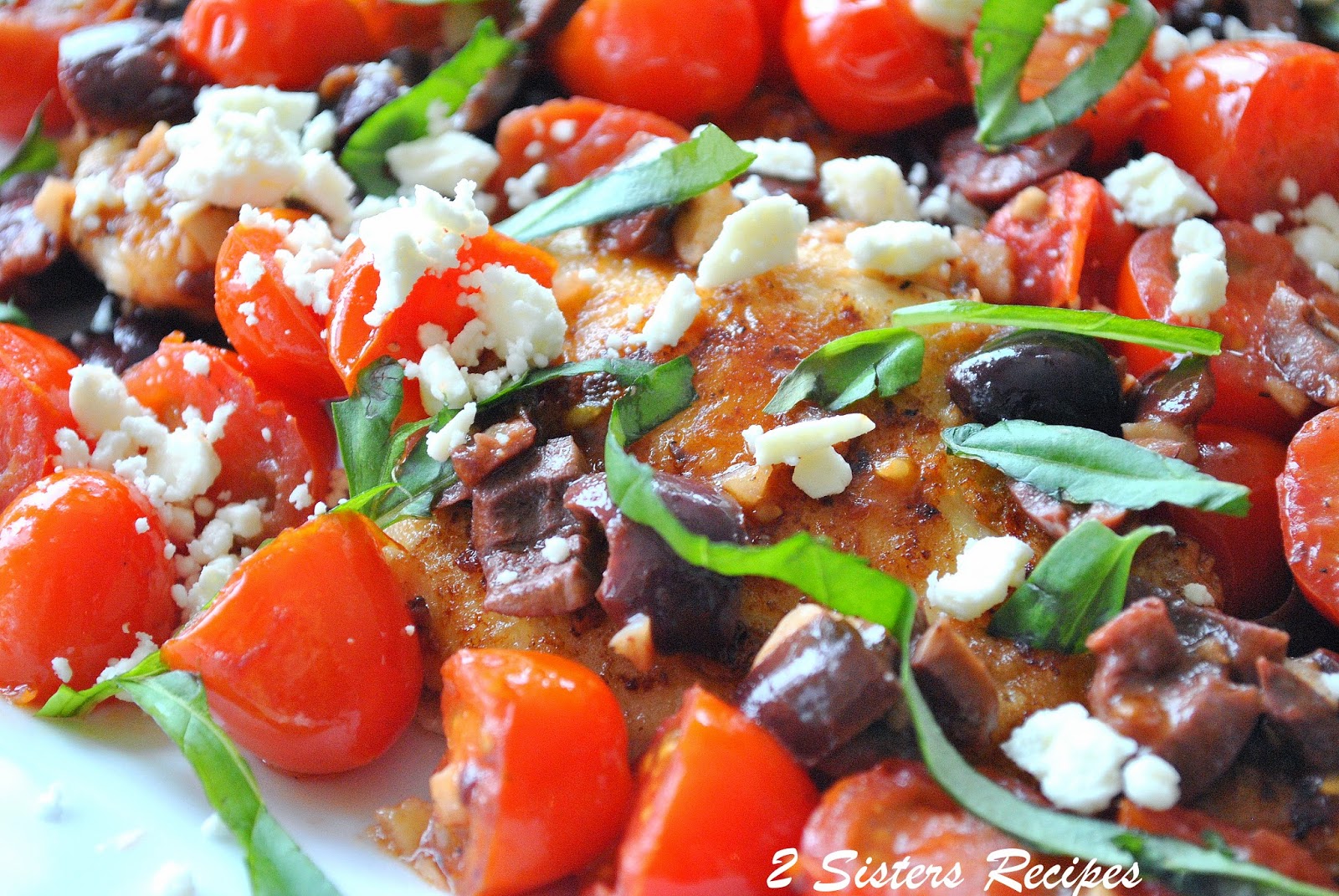 Sauteed Chicken Cutlets with Cherry Tomatoes, Olives, Feta, and Basil